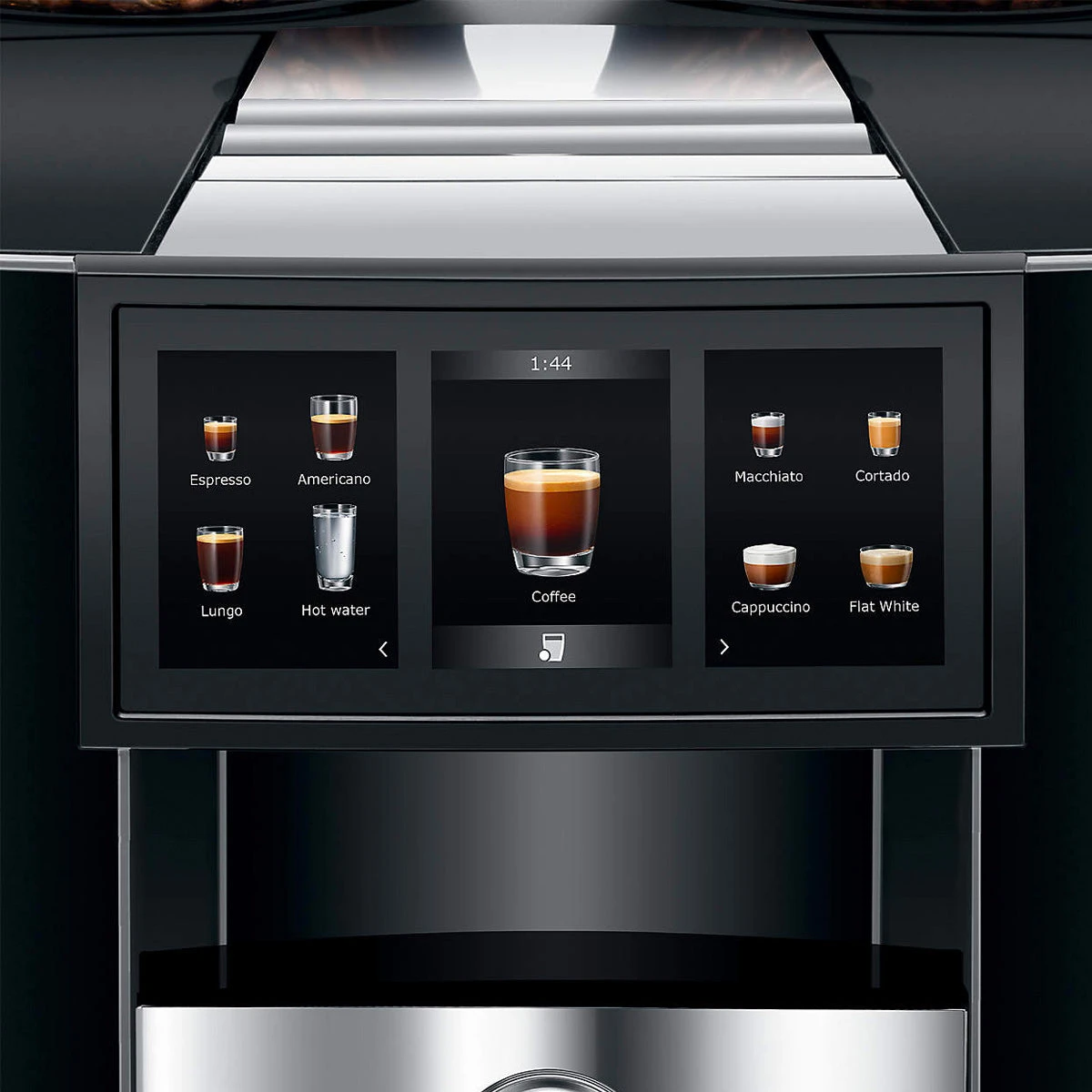 For maximum clarity and even more intuitive operation, the GIGA 10 comes with a new touch-operated panel in wide panoramic format. The new panorama panel allows you to see everything at a glance. Navigate intuitively through the wide range of settings in the new user interface. Simply tap and slide to customize and prepare your favorite beverage – with the GIGA 10 the size, intensity, and ratio of coffee to milk and milk foam can all be easily adjusted.